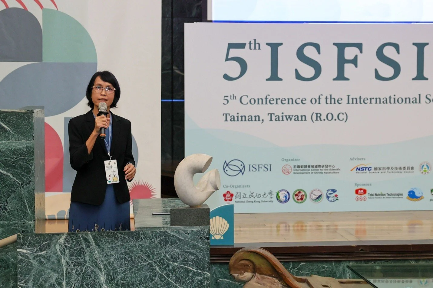 Dr. Saengchan Senapin (BIOTEC/NSTDA), leader of the project “Perceptions and Attitudes towards Fish Vaccination in Thailand” under the initiative “Improving Farmed Fish Welfare in Asia,” presenting her latest findings as an invited speaker at the 5th Conference of the International Society of Fish and Shellfish Immunology (5th ISFSI) held in Tainan, Taiwan (ROC) on 4–8 November 2025.